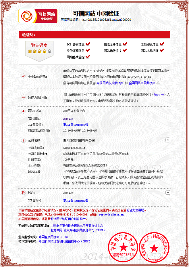 350网店服务平台通过互联网可信网站认证: